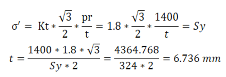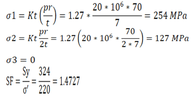 به منظور بدست اوردن تنش و کرنش در راستاهای مذکور به ترتیب زیر عمل می کنیم. با استفاده از ضریب اﻃمینان برابر ۱ و نظریه ون مایسز ضخامت مورد نیاز محاسبه شده است.