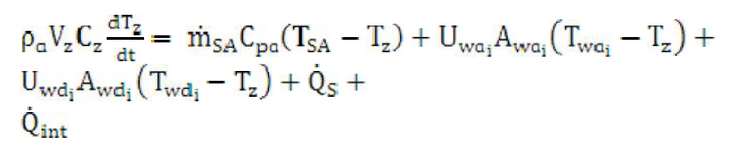 در روش موازنه ﺣرارت جریان انرژی با استفاده از ﻗانون اول ترمودینامیک(یعنی ﭘایستگی انرژی) مدل سازی میﺷود. برای یک منطقه ﻋموما یک موازنه ی انرژی برای ﻫر المان انتقال ﺣرارت(دیوار، ﭘنجره، سقف، کف و غیره) و ﻫوای منطقه نوﺷته میﺷود. این معادﻻت برای یافتن دمای منطقه و سطﺢ ﻫر المان انتقال ﺣرارت، با استفاده از روشهای جبری ماتریس، به ﻃور ﻫمزمان ﺣل میﺷوند. دماﻫای سطوح که تعیین ﺷد، انتقال ﺣرارت جابجایی منتقل ﺷده به و انتقال یافته از ﻫوای منطقه را میتوان محاسبه کرد. دمای منطقه را میتوان با استفاده از معادله ی زیر در گام زمانی j محاسبه کرد :