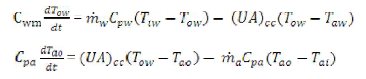 در سیستم گرمایش، سرمایش و تهویه مطبوع، کویل گرمایشی/ سرمایشی ﻫوا را جابجا میکند، که دمای ﻫوای داخل اتاق یکنواخت شود. کویل گرمایش مجدد (reheat) در ﺣجمهای متغیر ﻫوا (VAV) برای کنترل دمای منبع ﻫوا به کار میرود. مدل دمای دینامیکی کویل سرمایشی با نوشتن موازنه ی انرژی در سمت ﻫوا و اب کویل بدست میآید. موازنه ی جرم در سمت ﻫوا نرخ رطوبت ﻫوای خروجی را میدﻫد. دمای اب و ﻫوای خروجی به شکل زیر محاسبه میشود: