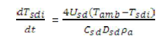 ﺿرایب a1 و b1 روی محدوده ی مشخصی از دمای منطقه ﻋمل میکنند. معادﻻت مشابه برای ﻫر المان که در منطقه ﻗرار میگیرد را به منظور محاسبه ی دمای ﻫوا باید نوﺷت و به ﻃور ﻫمزمان ﺣل نمود. ﻫنگامی که این ﺿرایب تعیین ﺷد، نرخ انتقال ﺣرارت به منطقه را به ﺷکل زیر میتوان محاسبه کرد: